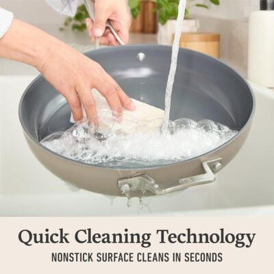 $344.99- Cookware Cleans in Seconds with Quick Cleaning Technology: Nonstick surface keeps foods from sticking so you can spend more time cooking, less time cleaning.