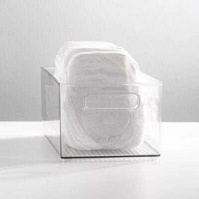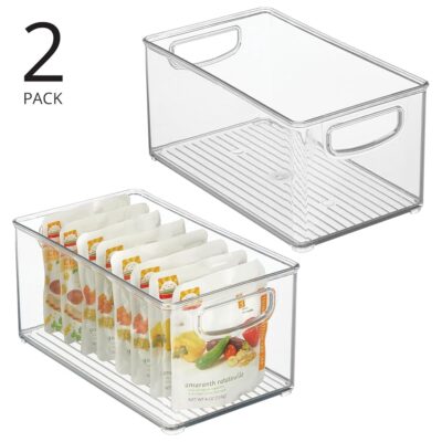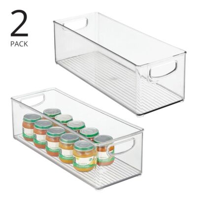 mDesign Plastic Deep Bin Organizer Caddy Container w/ Handles for Nursery, Kitchen, Pantry, Bathroom, Cabinet Storage Organization – Holds Snacks, Bottles, Baby Food Jar, Diaper – 14″ Long -Clear