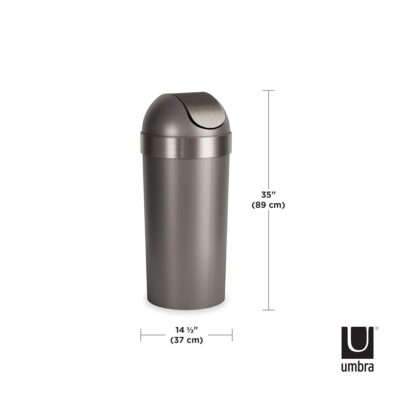 Umbra Venti Kitchen Trash Can with Swing Top Lid, Large 16-Gallon (62 L) Capacity, Pewter