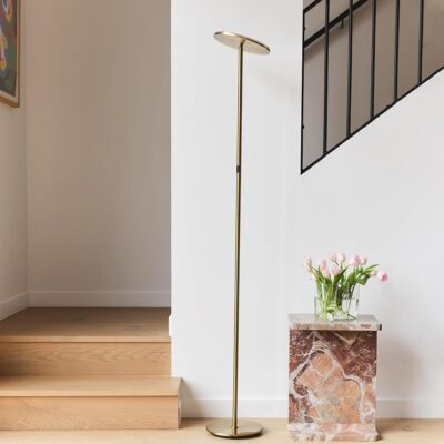 Brightech Sky LED Floor lamp for Living Rooms & Offices -Torchiere Super Bright , Dimmable, Tall Standing Lamp for Bedroom Reading – Gold Brass