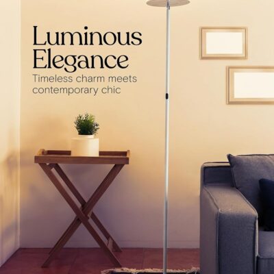 $73.30- Super Bright LED Lighting: The Sky LED floor lamp provides powerful illumination with 2190 Lumens and 26 watts of power. The warm white light of 3000K is perfect for reading, writing, or relaxing and won't strain the eyes. With a cord that extends over 7 ½ feet, the lamp is versatile and can be positioned in the perfect spot. Its sleek, contemporary design makes it a great addition to any room, fitting perfectly in corners or next to a couch, bed, or desk.