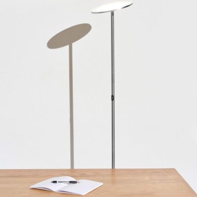 - 3-Way Dimmer and Memory Mode: The Sky complements contemporary living room decor and its body fits easily in corners. Plus, the base slides under sofas. Adjust the brightness level of this LED floor lamp with a simple touch of a button featuring three dimmer settings. The pivoting head of this tall lamp lets you angle the light for a greater illumination when desired. The standing lamp has a memory function to remember your lamp's last brightness setting and works with wall switches.
