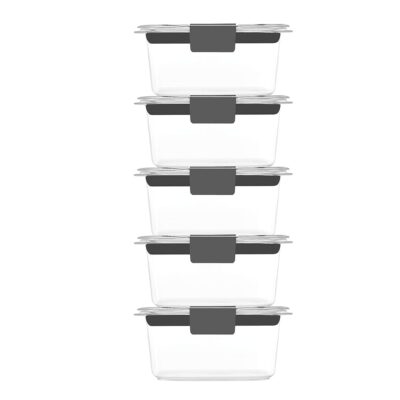 $33.11- STAINSHIELD PLASTIC: Rubbermaid Brilliance meal prep containers are designed with premium StainShield plastic, and have crystal-clear lids and bases so it's easy to see inside—plus they're stain- and odor-resistant, helping them stay looking like new