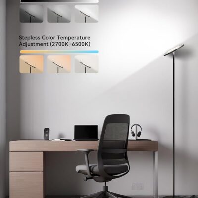 - Three Color Temperatures and Stepless Dimming:The Joofo floor lamp has stepless brightness adjustment as well as three adjustable color-temperature settings from 3000K to 5000K, for warm white, natural white, and cool white light. It remembers your settings between uses and when power is interrupted