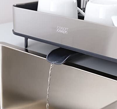Joseph Joseph Extendable Dish Drying Rack with Dual Parts – Stainless Steel, Non-Scratch, Movable Utensil Drainer & Drainage Spout, Gray