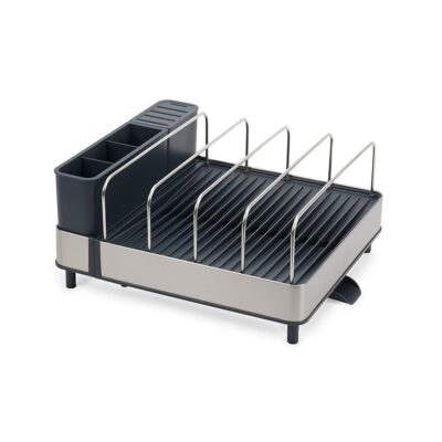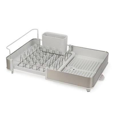 Joseph Joseph Extend Steel Expandable Dish Drying Rack with Removable Cutlery Holder Swivel Draining Spout, Stainless Steel