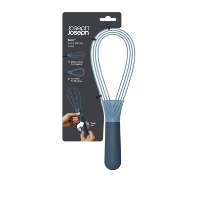Joseph Joseph Twist Whisk 2-In-1 Collapsible Balloon and Flat Whisk Silicone Coated Steel Wire, Sky Blue