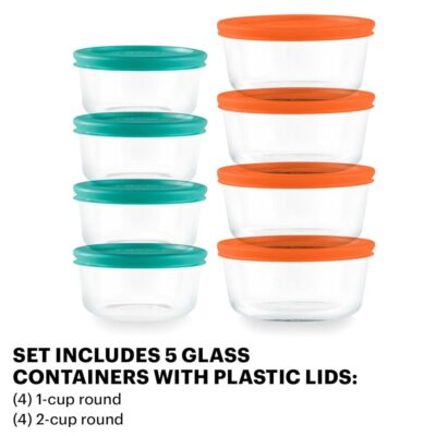 $33.80- 16-PIECE SET: Includes (4) 2-Cup and (4) 1-Cup round glass containers with lid. These containers will help you store your food safely while saving space.
